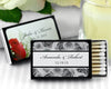 A perfect match--you and the way these personalized matchboxes coordinate with your event! With so many designs and colors to choose from, it's easy to create just the look you want on this practical wedding favor. From rehearsal dinners to wedding receptions, they'll surely light up the room...just like you!
