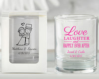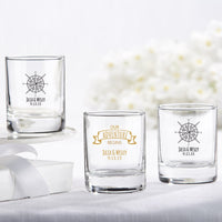 Personalized shot glasses are memorable keepsakes for your guests, and guarantee that your event will not be forgotten! These shot glass wedding favors can be used as either votive candle holders or as shot glasses. Whether you're headed to Vegas or honeymooning in, they can be imprinted with a variety of awesome designs that will work for just about any theme. Include your names and wedding date to make the personalization complete!