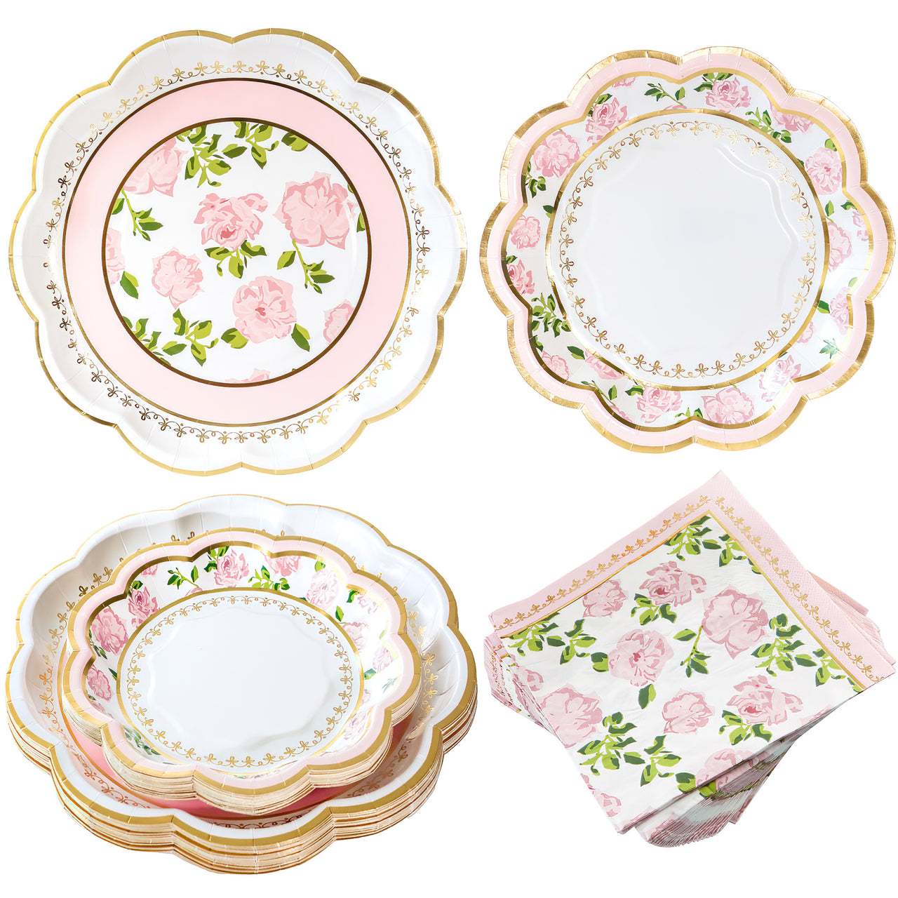 30pcs 6.5-inch Durable Paper Napkins: Complement your plates with these charming and durable paper napkins. Measuring 6.5 inches, they are the perfect size for dainty tea sandwiches and beverages. These napkins are strong and absorbent, making sure your guests are comfortable throughout the event.