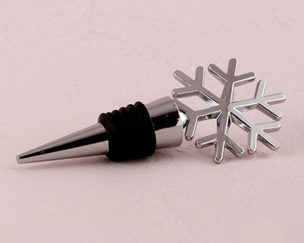 A breath of wintry chill on every bottle, makes for the perfect winter wedding favor! These beautifully crafted snowflake bottle stoppers accent any decor, while remaining wonderful gifts for your guests. Each chrome stopper measures approx. 4.5" tall.