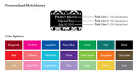 A perfect match--you and the way these personalized matchboxes coordinate with your event! With so many designs and colors to choose from, it's easy to create just the look you want on this practical wedding favor. From rehearsal dinners to wedding receptions, they'll surely light up the room...just like you!
